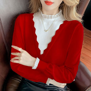 红毛衣秋新款长袖针织开衫外套女加厚宽松慵懒风毛衣蕾...