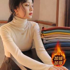 双面德绒堆堆半高领发热打底衫女内搭秋冬季洋气白色加...