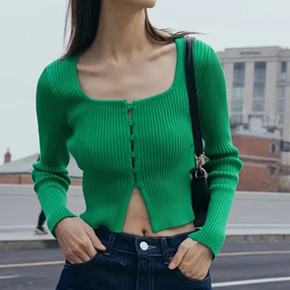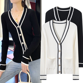 欧美风2021秋冬新款女装时尚设计单排扣V领针织开...
