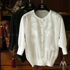如此精致美好 栩栩蝴蝶绣片水晶扣珍珠轻薄透气小开衫...