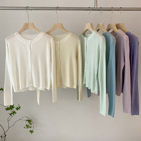 冰丝针织开衫女短款小外套2022夏季新款洋气薄防晒...