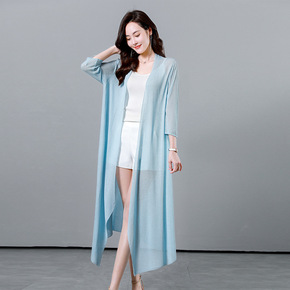 冰丝针织防晒开衫外套女长款2022夏季新款韩版薄外...