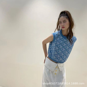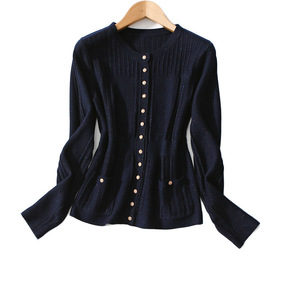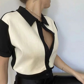 批发2021夏季美式翻领单排扣针织开衫上衣女修身显...