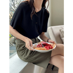 [玳禾]2022夏季新品气质休闲百搭单排扣斜领短袖...