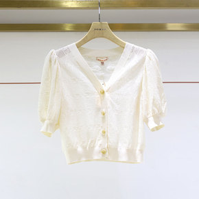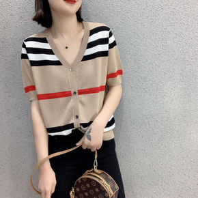 2022春夏季新款冰丝针织开衫薄款短袖女防晒上衣V...