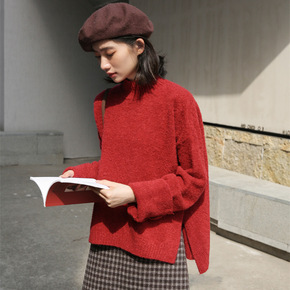 半高领毛衣女士宽松外穿2020年新款短款中领针织打...