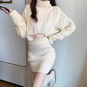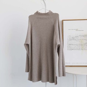 秋冬季韩版女装针织衫加厚外套中长款打底衫半高领宽松...