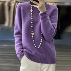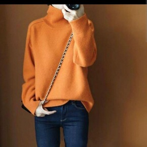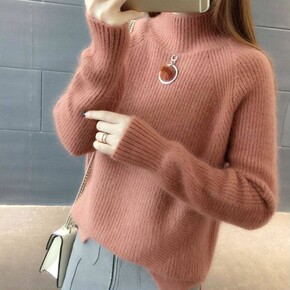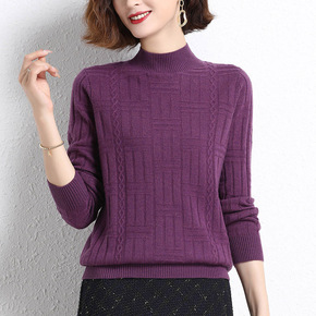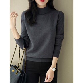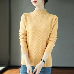 22年新款半高领羊毛衫女加厚套头打底毛衣宽松扭花高...