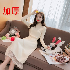 毛衣女中长款打底衫2022宽松洋气秋冬针织连衣裙加...