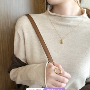 【不起球】纽扣半高领毛衣女打底衫秋冬新款韩版套头修...