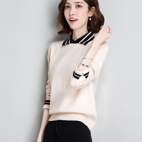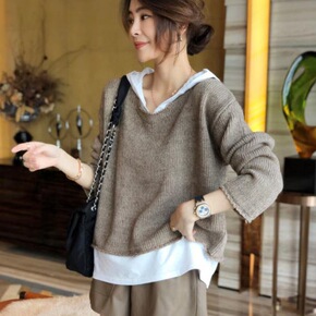 洋气假两件套针织衫卫衣女时尚连帽上衣潮秋冬装202...