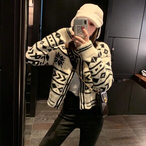 短款开衫外套女针织衫宽松加厚毛衣秋冬网红韩版洋气复...