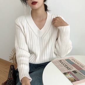 秋冬2021年新款加厚V领毛衣女宽松显瘦韩版慵懒风...