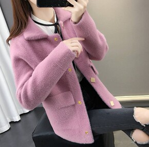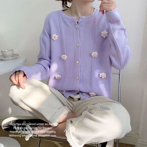重工花染!神仙紫lime珍珠扣打底加厚针织开衫女短...