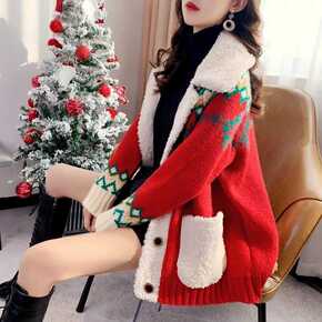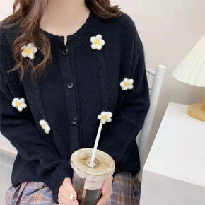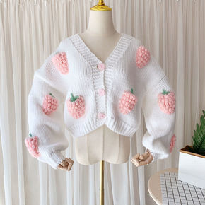 新款立体钩花草莓小众开衫加厚慵懒风甜美短款毛衣外套...
