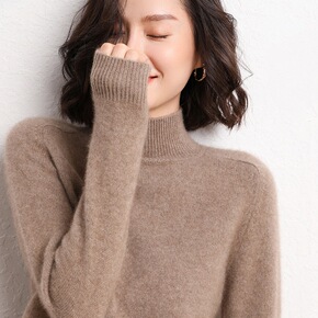 秋季新品山羊绒半高领套头加厚软糯宽松焦糖色针织衫套...