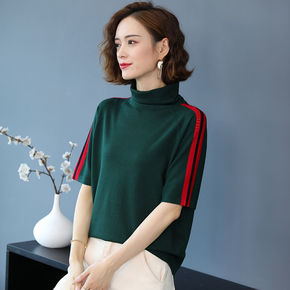 高领短袖毛衣t恤女针织打底衫宽松上衣春秋冬装中袖时...