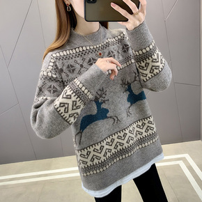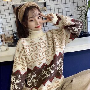 圣诞小仙女秋冬款外穿半高领毛衣仿水貂绒宽松慵懒外搭...