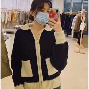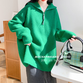 韩国东大门翻领拉链毛衣外套女2021秋冬新款时尚减...