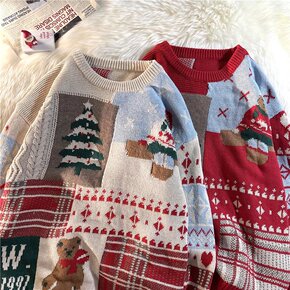宽松外穿情侣款圣诞毛衣女复古慵懒风日系秋冬季加厚设...