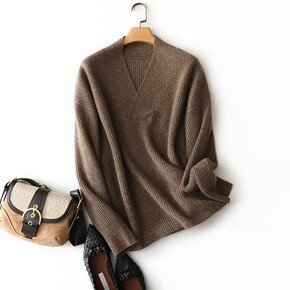 卡莎娜秋冬时尚V领纯山羊绒衫花纱套头毛衣长袖显瘦1...
