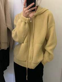 慵懒港风复古韩版连帽开衫毛衣女秋冬洋气设计感小众拉...