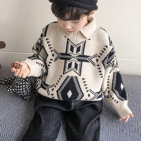 潮童装男童韩版帅气翻领针织打底衫2021秋冬新款女...