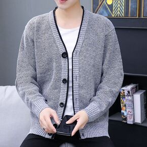秋冬季外套男韩版针织衫开衫夹克潮流大码新款男士休闲...