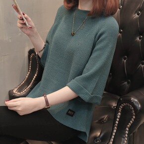 2022新款七分袖春秋针织衫女套头宽松短款韩版圆领...