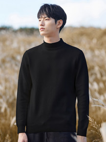 男装直播供货一件代发男式针织衫青纯色半高领套头毛衣...
