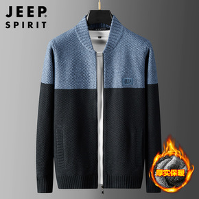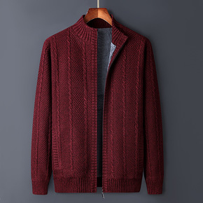 批发境外秋冬季内加绒加厚款针织衫开衫男士外套连帽毛...