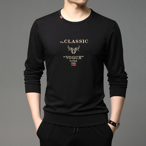 2021冬季新款中青年男士休闲时尚长袖t恤翻领宽松...