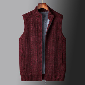 新款秋冬针织开衫马甲男装加绒加厚立领无袖外套坎肩外...