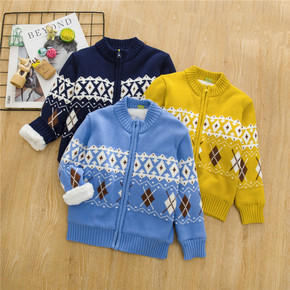 新款加绒童装拉链开衫毛衣棉衣儿童纯棉针织衫棉衣外套...