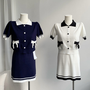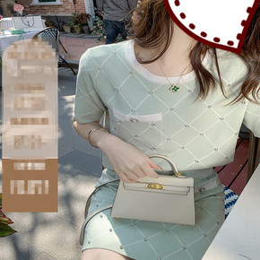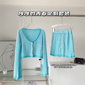 气质针织套装裙女两件套名媛针织裙薄荷绿连衣裙...
