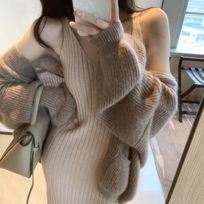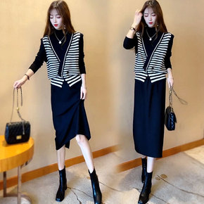 法式毛衣套装两件套秋冬2021新款宽松针织打底衫民...