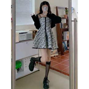时尚套装女夏季2022新款超仙吊带连衣裙薄款针织开...