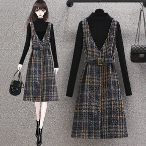 大码女装2021秋冬轻熟风减龄半高领针织打底衫连衣...