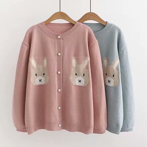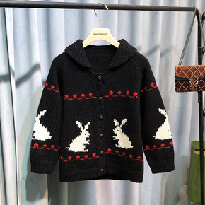 双十二特价!清新甜美娃娃领可爱小白兔钩花图案长袖针...