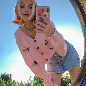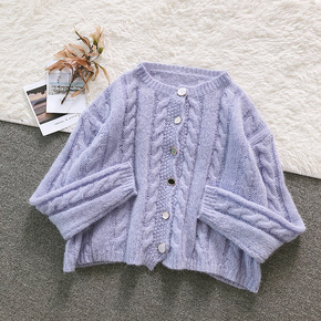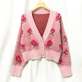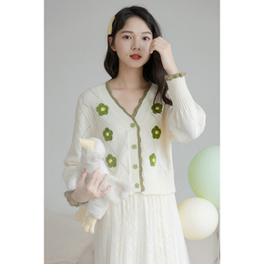 2021秋冬气质通勤v领甜美短宽松开衫长袖针织可爱...