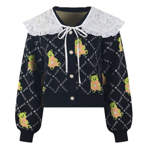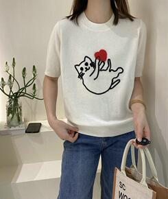 欧洲站2022春季新款甜美羊毛休闲爱心猫咪减龄可爱...