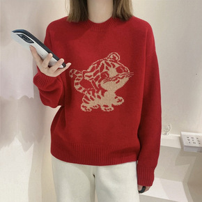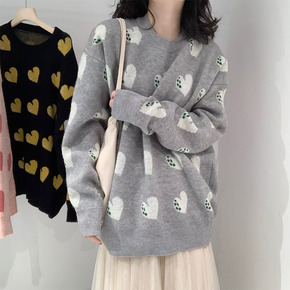 LD 2022春季新款时尚气质宽松可爱提花针织衫 ...