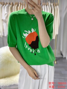 2022新款可爱水果系列针织短袖毛衣宽松T恤洋气上...