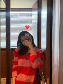 2022女春秋慵懒羊毛马海毛破洞毛衣 草莓奶油条纹...