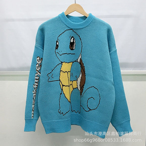 跨境卡通情侣装毛衣慵懒风羊毛衫宽松外套圆领针织衫亚...