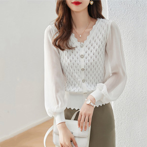 2022春季新款镂空外搭薄款毛衣V领无袖小开衫针织...