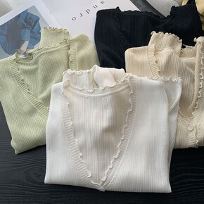 2022年春秋新款V领日系宽松简约清新慵懒风打底针...