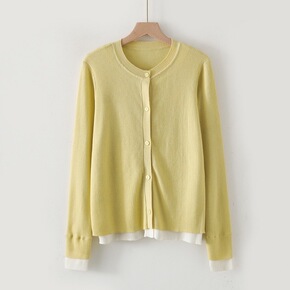 伊芙丽 诺玎 2021秋季新款休闲拼接V领假两件针...