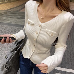 2021秋女装新款上衣纯色气质通勤套头V领针织打底...