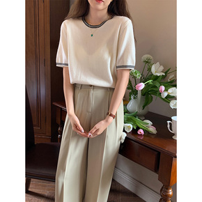 Allo Fu 女装新款2022春季短袖针织衫女...